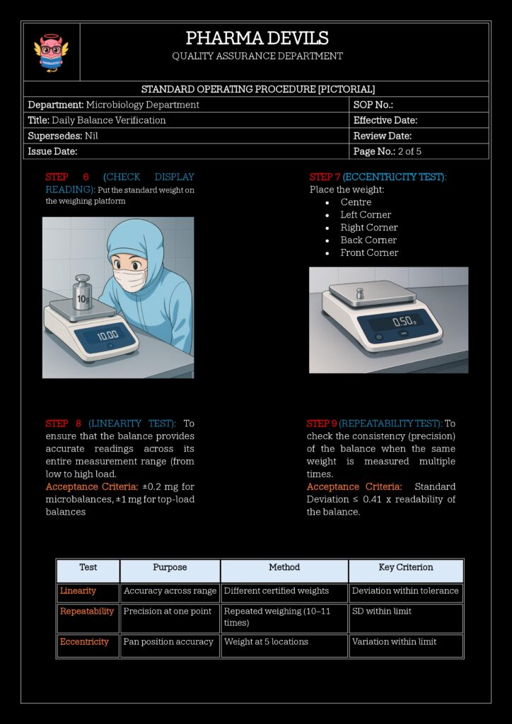 - Check against predefined allowable tolerance (e.g., ±0.2 mg for 10 g, etc., based on risk and balance capability).