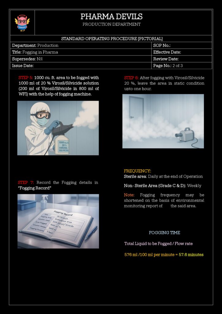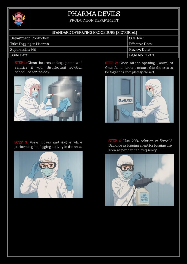 - Initiate fogging via approved request (BMR/BPR reference, deviation CAPA, or planned preventive activity).