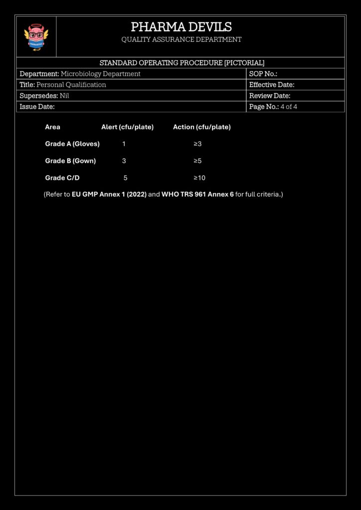 - Action / Failure limit: > 0 CFU/plate (any growth = trial failure).